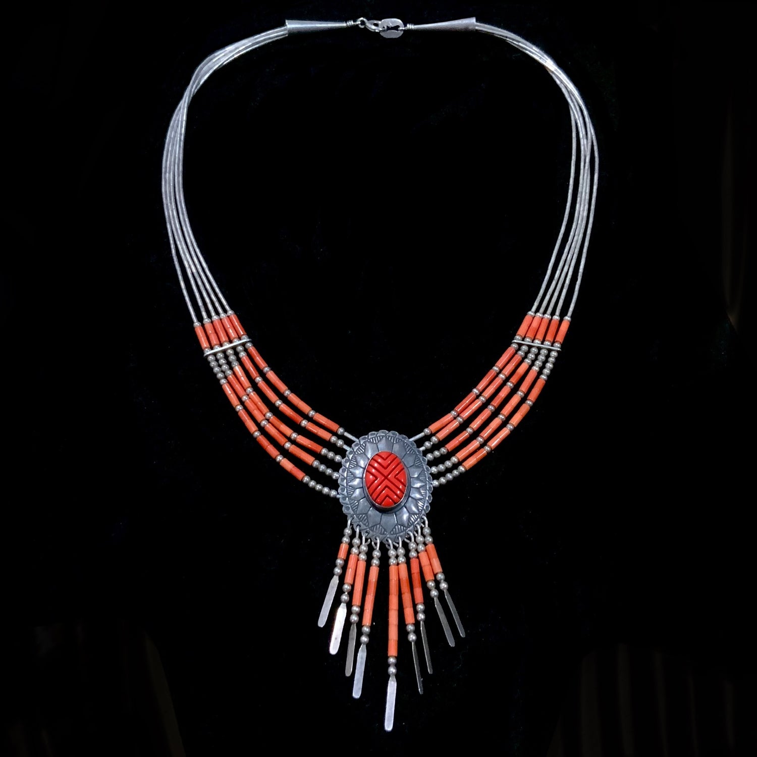 Vintage QT Quoc Trading Red Coral 925 Sterling Necklace