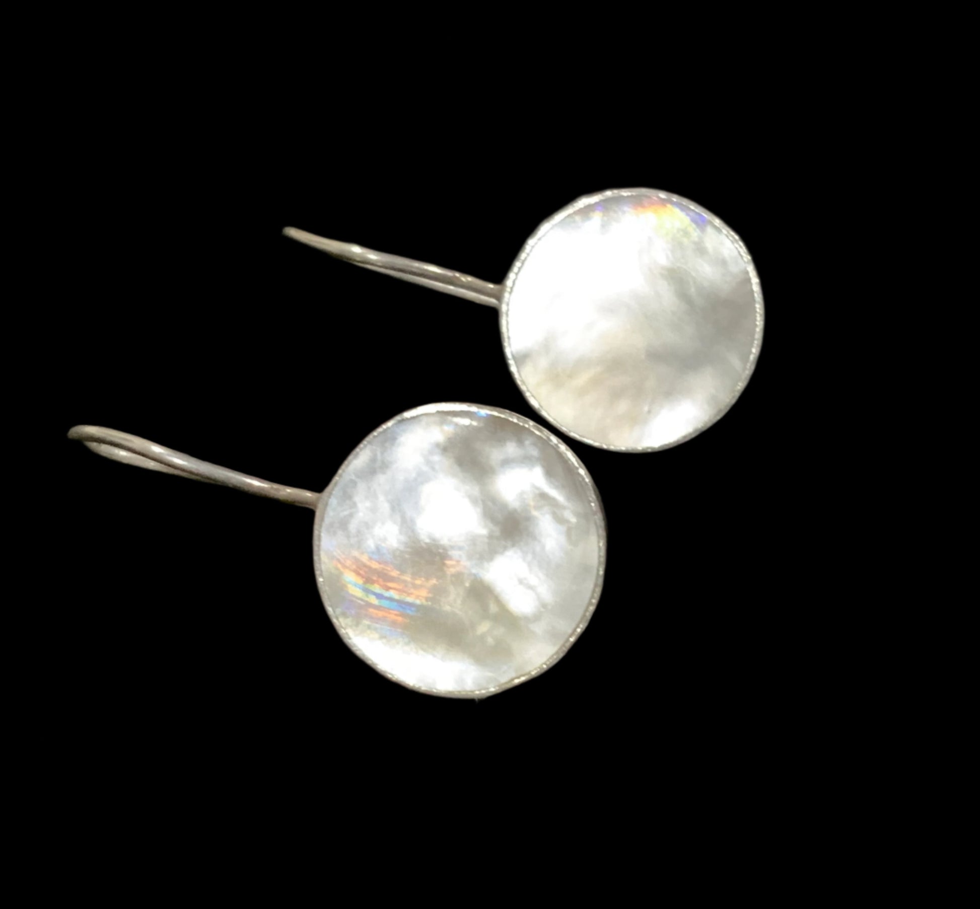 925 Sterling Silver & White MOP Shell Dangle Earrings