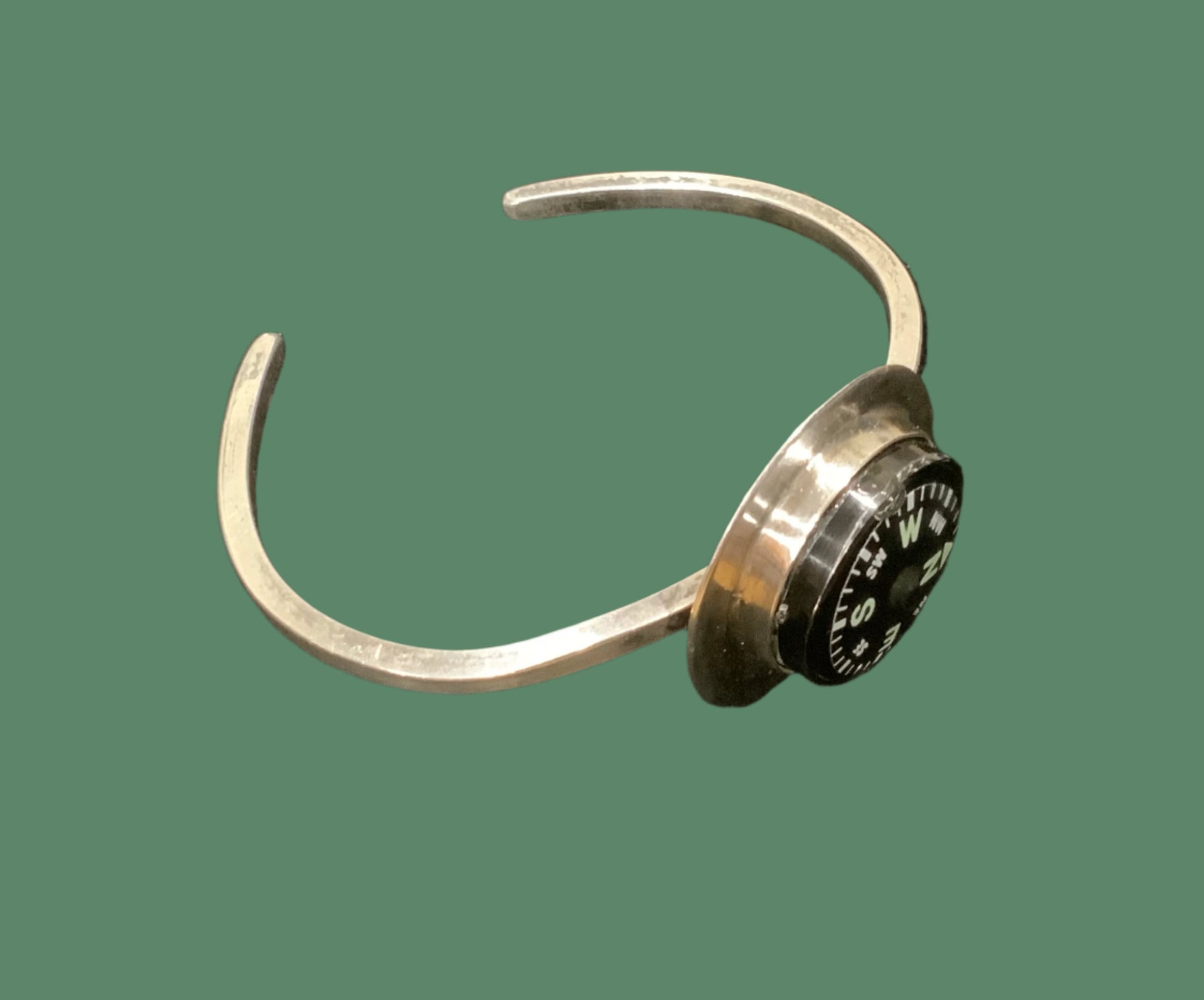 925 Sterling Silver Compass Cuff Bracelet Signed CAF