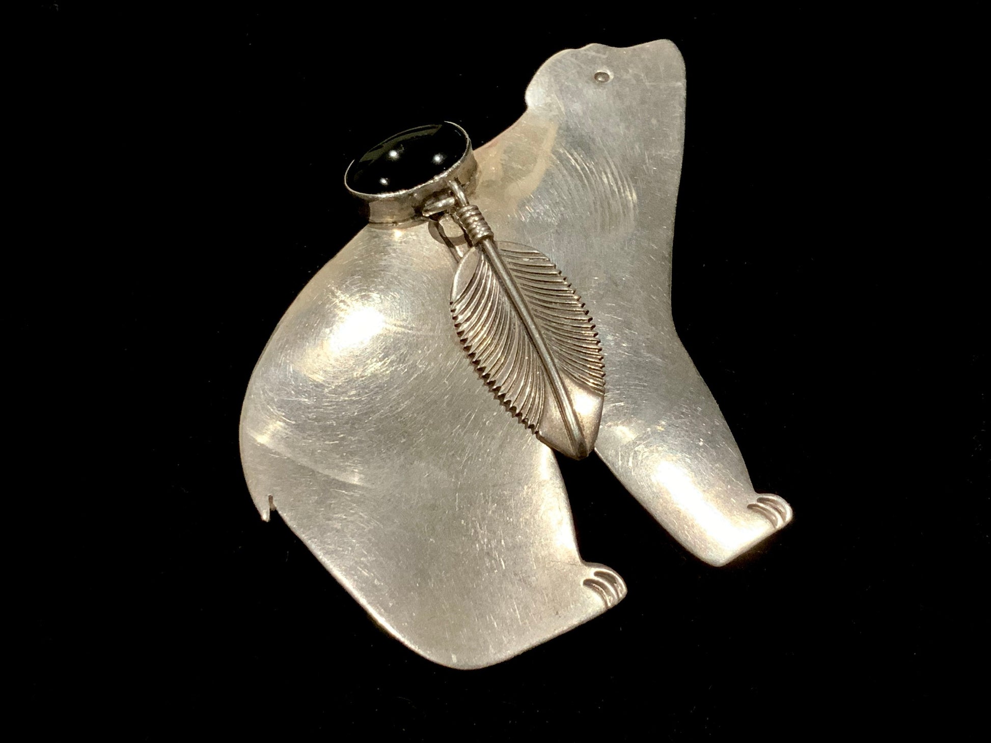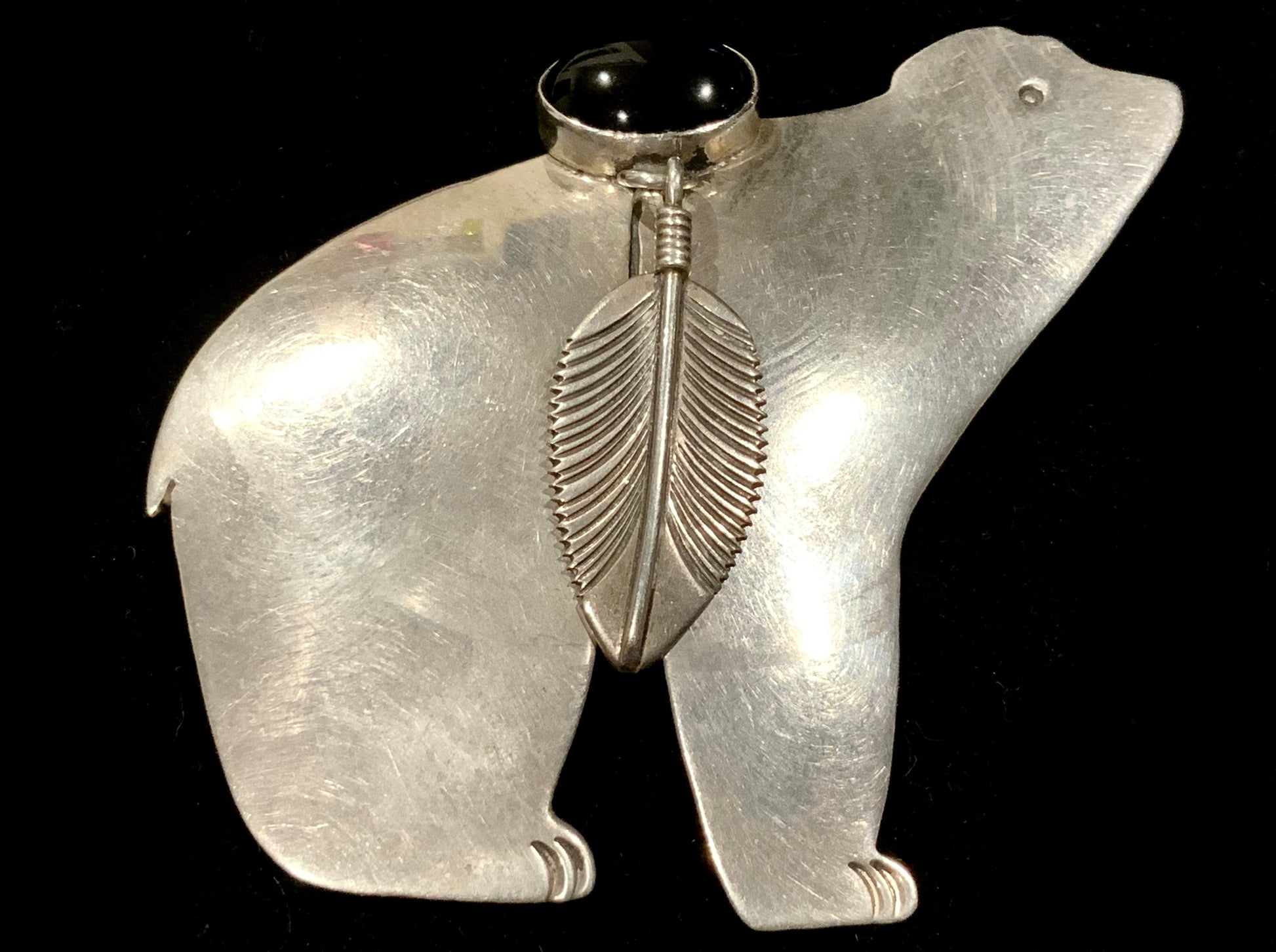 BIG Wayne Etsitty Huge Navajo Spirit Bear Onyx & Sterling Silver Tribal Brooch Pin
